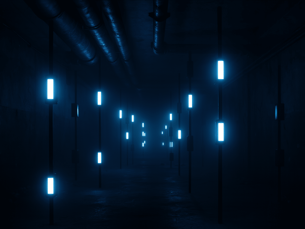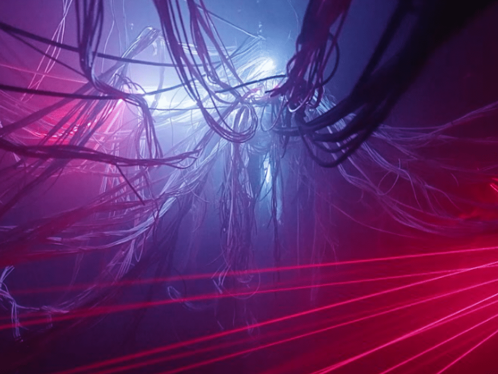 Zwischen rohen Wänden und Maschinen windet sich „Tentacles“ wie ein digitales Wesen. Leuchtende Kabel, Klanglandschaften und Lichtimpulse reagieren auf jede Bewegung (by Ausgang Studio).
